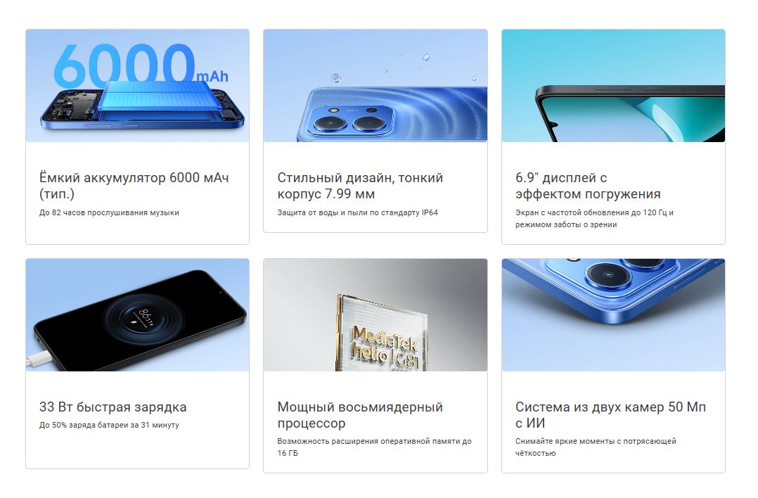 • Смартфон Redmi 15C 4/128GB Blue/Синий